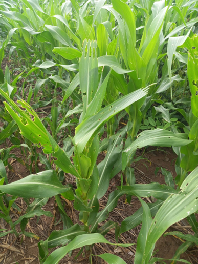 La forma adulta del gusano cogollero (fig.1) es una mariposa de hábitos nocturnos y migratorio, en que las hembras depositan su masa de huevos en la fase inferior de las hojas. Luego al nacer, los gusanos se alimentan de las hojas nuevas destruyéndolas. Después del período larval, los gusanos penetran en el suelo y se transforman en crisálida. Post este periodo surge la forma adulta. Los perjuicios son más severos en su forma de gusano donde a parte de raspar perforan la lamina foliar.
