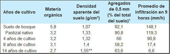 ** La densidad de 1,60 se toma como límite, siendo impenetrable para la mayoría de las raíces.